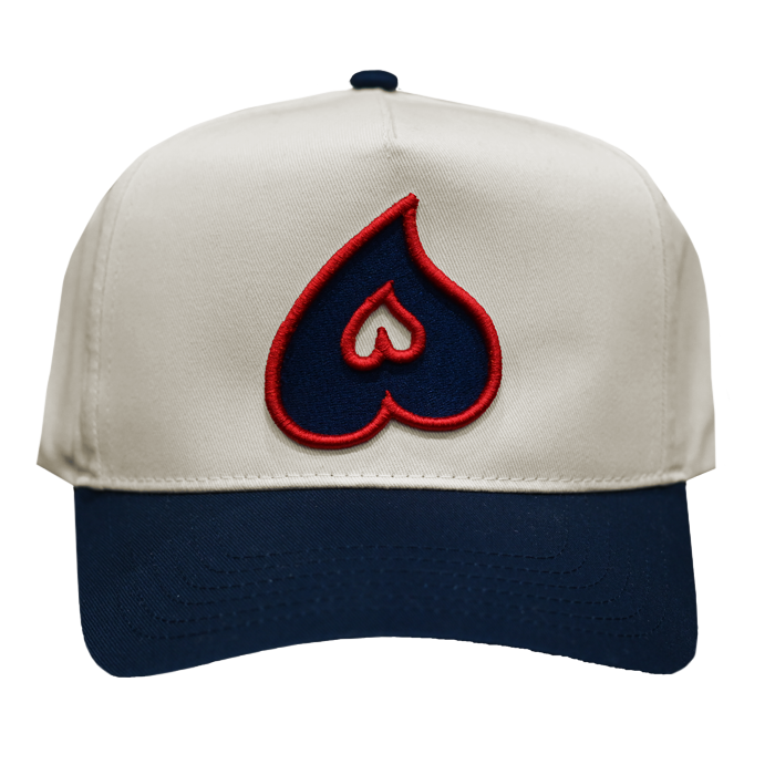 65% Polyester 35% cotton twill 5 panel cap with curved brim, front and back embroidered logo.
